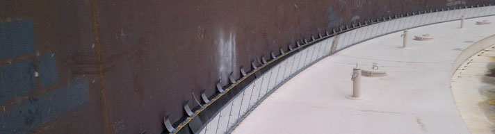The HMT Integral Foam Dam is a bolted design and a desirable alternative to the traditional foam dam. The HMT Integral Foam Dam directs foam efficiently to the rim space, is corrosion resistant, will last the life of your tank and was designed under the guidance of NFPA 11. Bolt-on installation allows for easy in-service installation.